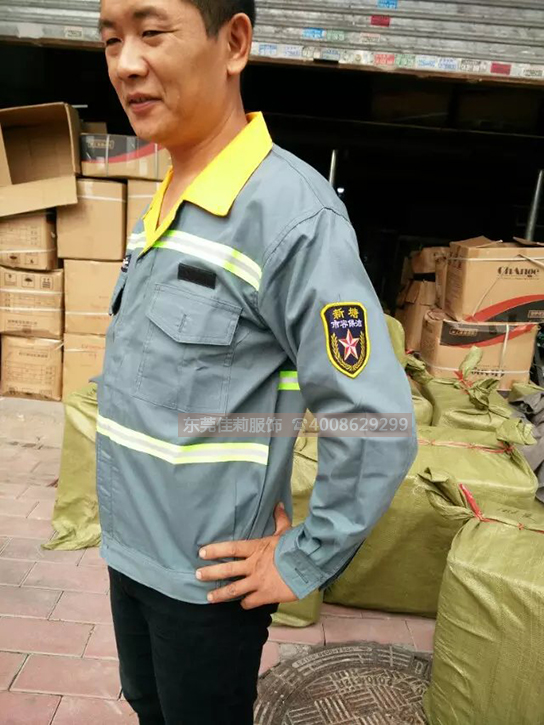 為迎接五一勞動(dòng)節(jié)的到來(lái),佳莉特地為新塘環(huán)衛(wèi)工人定制了一批新的環(huán)衛(wèi)工作服,今年的五一是個(gè)多雨的季節(jié),環(huán)衛(wèi)工人需要比以往更辛勤勞動(dòng)才能換來(lái)城市的清潔。佳莉考慮了環(huán)衛(wèi)工人的工作環(huán)境,不僅在選材上用了耐臟易洗,吸汗透氣的面料,還把環(huán)衛(wèi)工人的安.全放在首.位。
