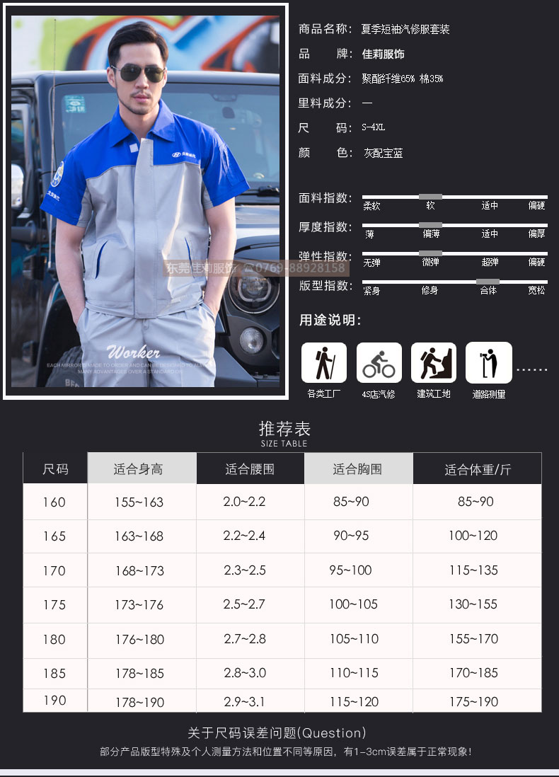 北京現(xiàn)代工作服 短袖維修工作服 JL-QX008