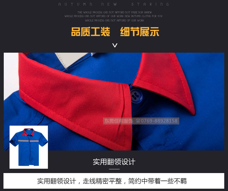 高品質全新形象,經典設計,立體裁剪,時尚翻領,質感有型。走線細致,優質暗扣,實用性強。胸前口袋撞色拼接,雙明線縫制既時尚又耐用,即使在下班之余也可以穿。