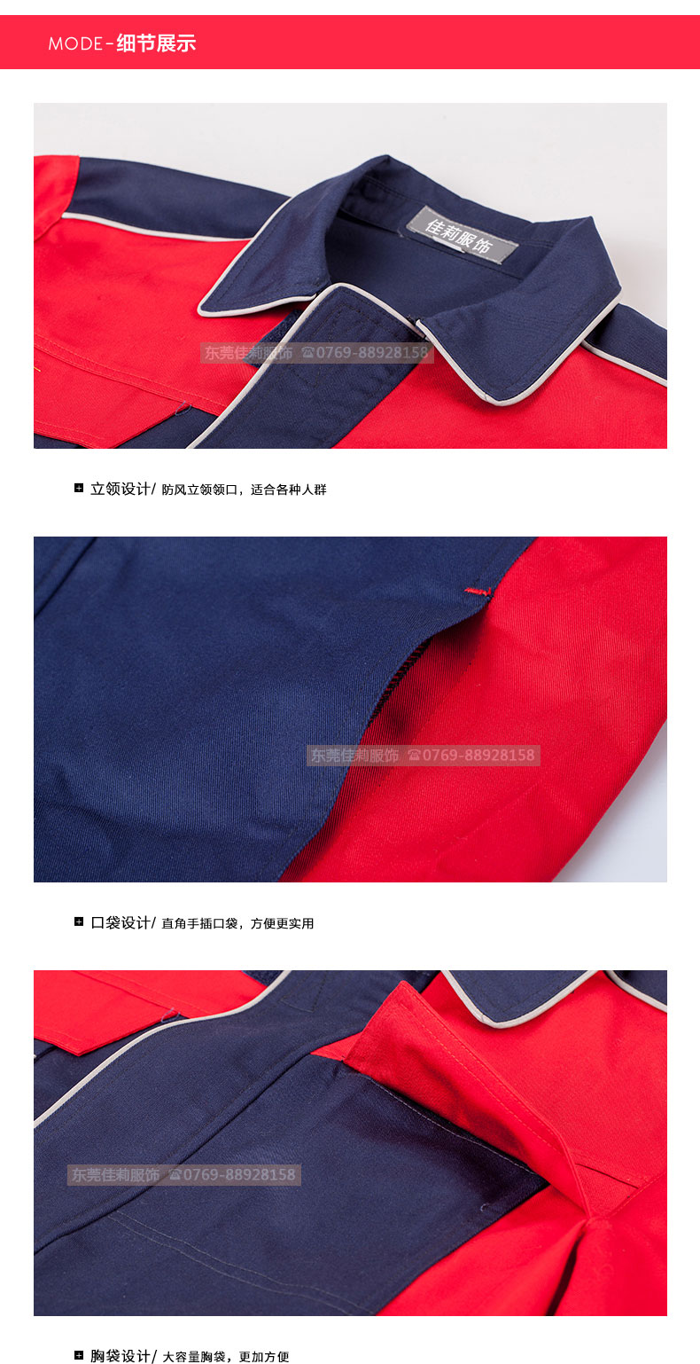高品質全新形象,經典設計,立體裁剪,時尚翻領,質感有型。走線細致,優質暗扣,實用性強。胸前口袋撞色拼接,雙明線縫制既時尚又耐用,即使在下班之余也可以穿。