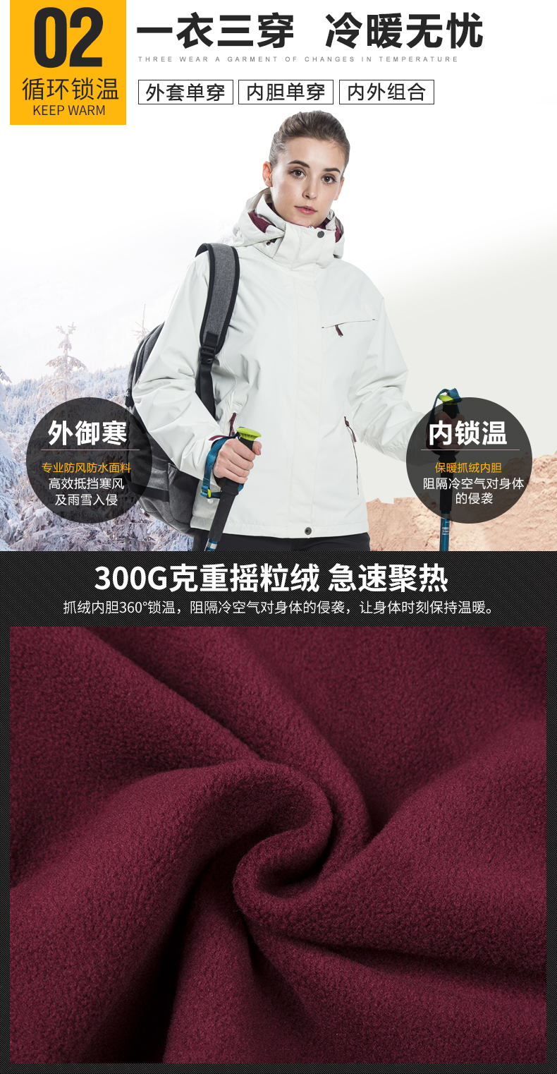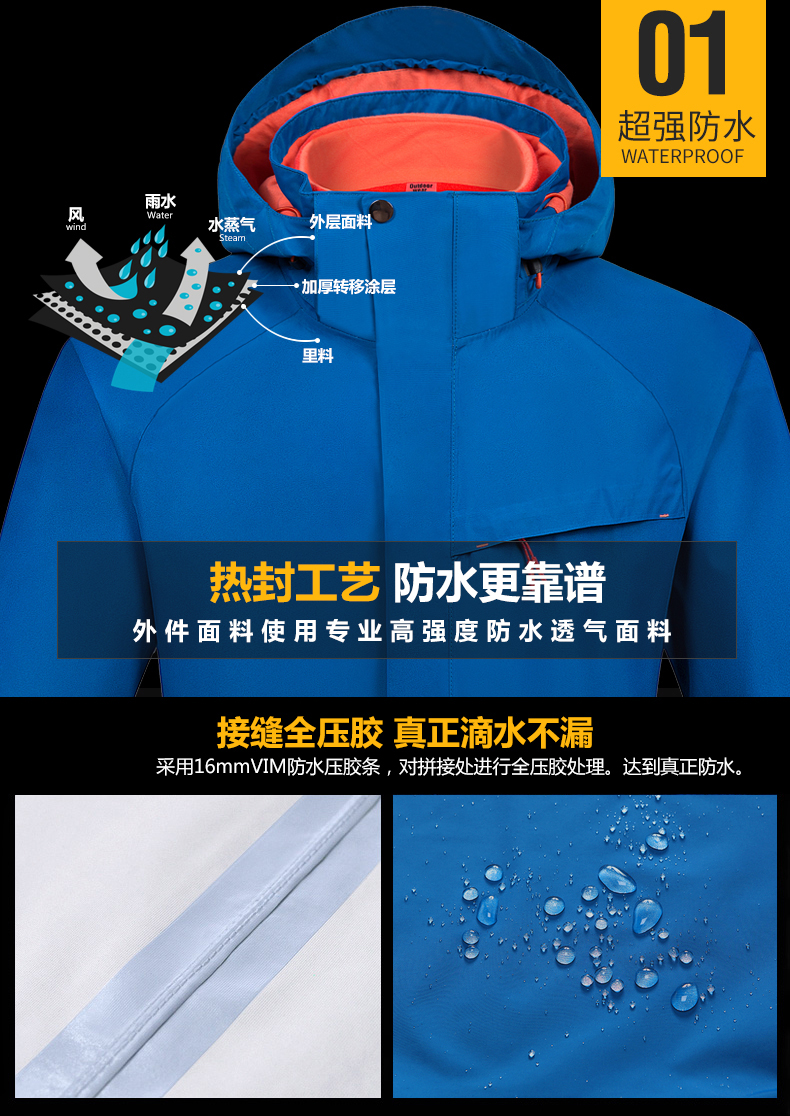 廠家直銷戶外服裝沖鋒衣三合一防水保暖工作服定制JL-570